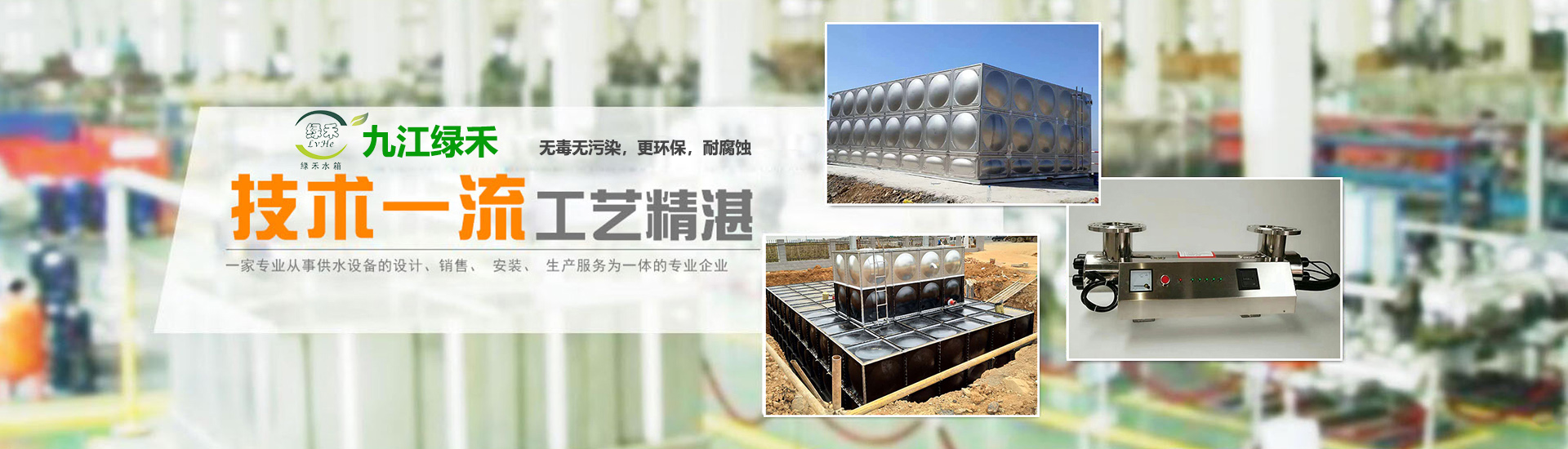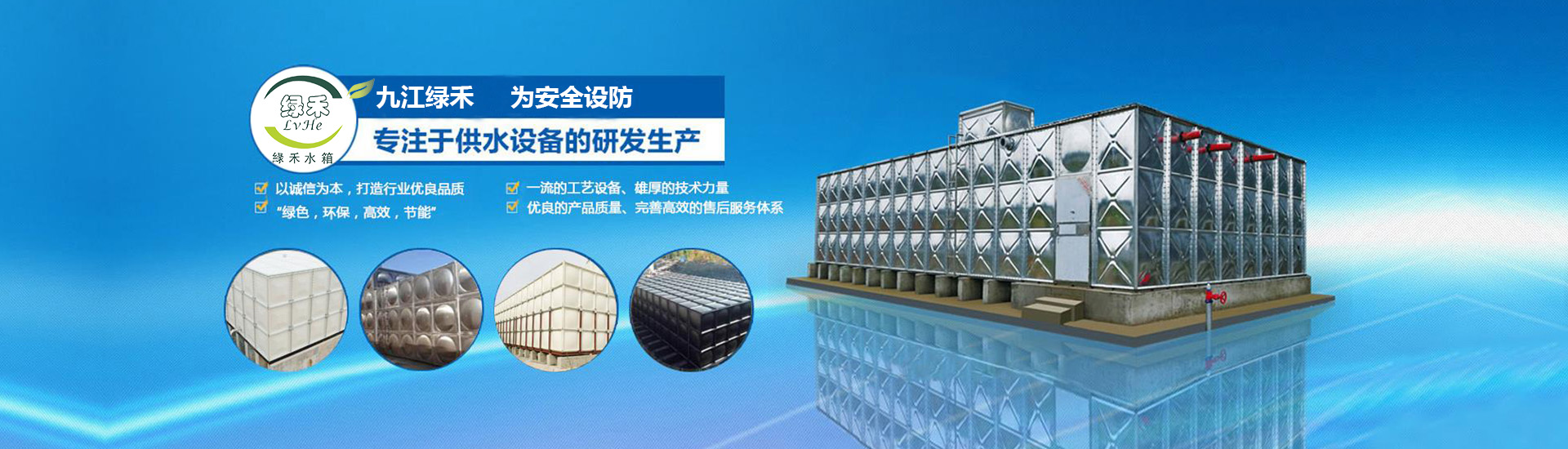九江绿禾供水设备有限公司在武汉、九江、黄冈均设有办事处。是一家专注销售安装各类供水设备的专业公司,公司主要经营不锈钢水箱,BDF水箱,玻璃钢水箱,隔油池,水箱消毒器以及各种给排水设备以及各种供水设备的安装,清洗,维修等业务。